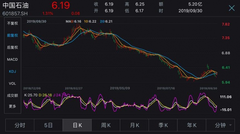 9月30日,受利好音讯影响,我国石油A股股价逆势上涨1.31%。