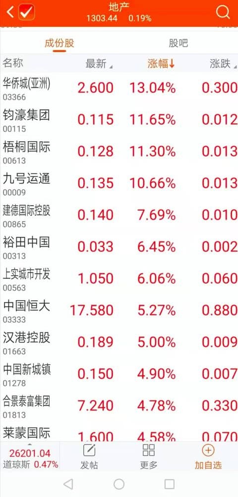 10月4日,以碧桂园、我国恒大为代表的香港上市内房股股价体现亮眼。我国恒大全天最大涨幅超6%,收盘时上涨5.27%;碧桂园最大涨幅超4%,收盘时上涨2.77%。