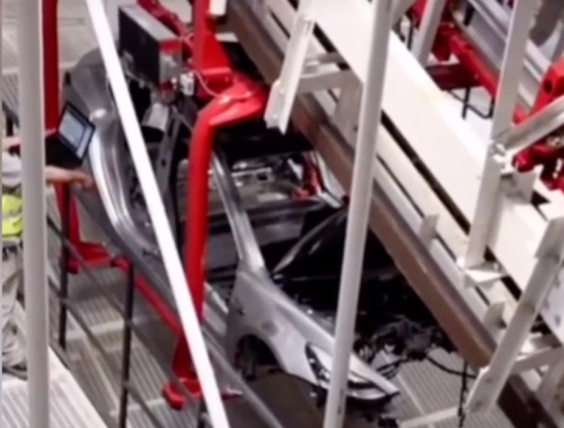 这段视频显现,特斯拉Model 3的部分车体正沿着出产线运送,这表明该公司正在进行终究测验,并为本月全面投产做准备。