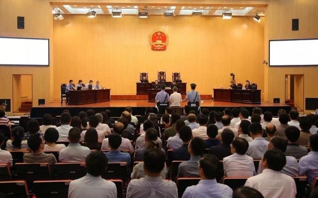 (张杰纳贿案庭审现场 来历:北京法院官方微博“京法网事”)