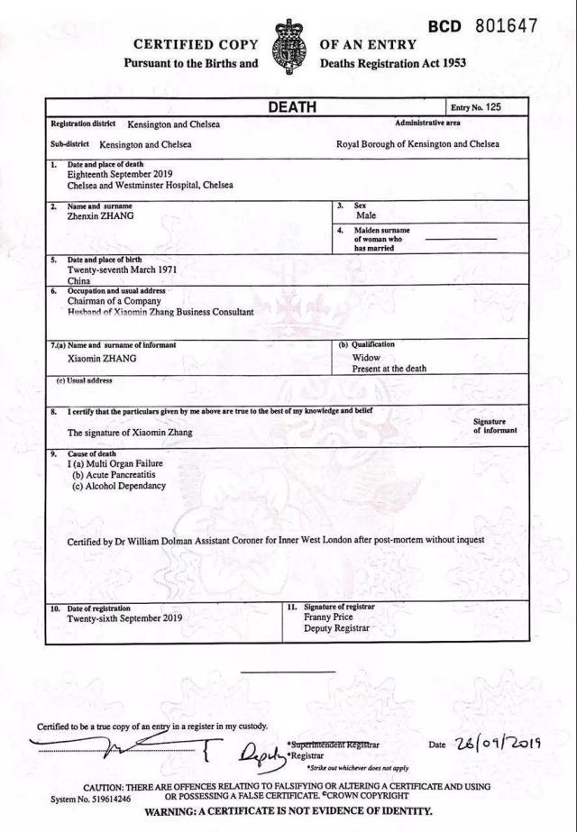 4、现在正经过英国外交部和我国大使馆领事处处理逝世证明的双认证文件,一经获得,咱们会及时予以发布。