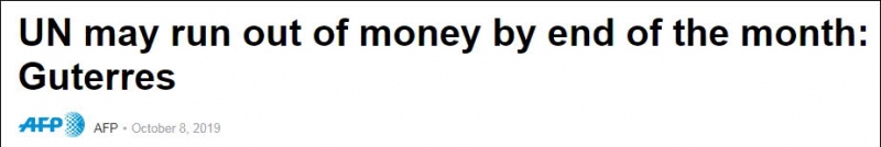 法新社8日报导,联合国秘书长古特雷斯10月7日向3.7万名雇员泄漏,由于本年仅收到70%的成员国会费,联合国到9月底已负债2.3亿美元,10月底或许就“捉襟见肘”。