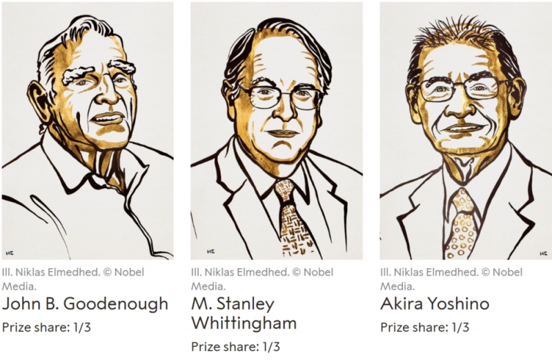 2019年诺贝尔化学奖的三位获奖者(图片来历:诺贝尔奖官网)