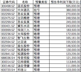 详细来看,温氏股份(300498)以59.5亿元遥遥领先;中兴通讯(000063)以扭亏38亿元居于第二位;圣农开展(002299)2019年前三季度估计净利润为27亿元,居于第三位。