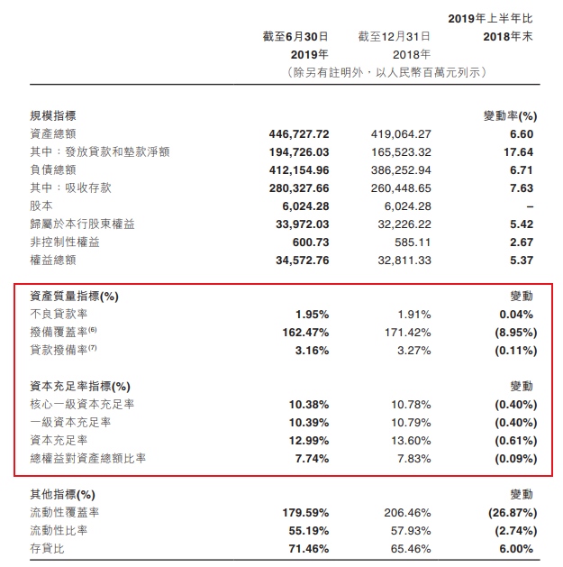 (江西银行2019年中报)