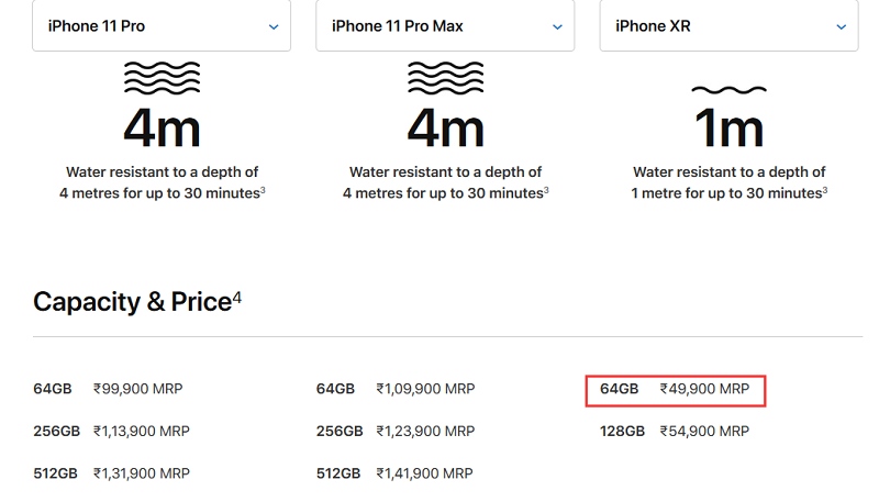现在印度在售64GB版别iPhone XR的价格为49,900印度卢比,约704美元(约4980元人民币);美国官网同款在售机型无锁版税前价格为599美元(约4237亿元人民币)。