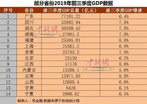在这14个省份中,广东、四川、湖北、湖南、福建、安徽、江西、云南、山西、宁夏10个省份的前三季度GDP增速超越了全国前三季度GDP增速。