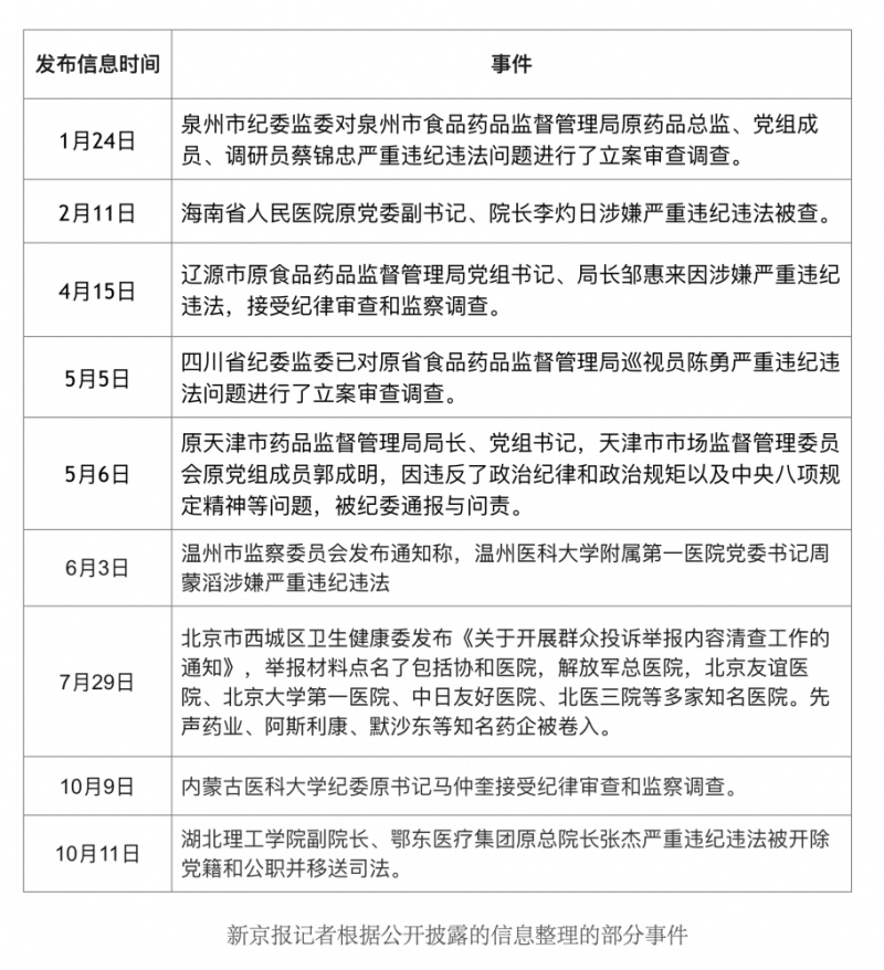 新京报讯(记者 王卡拉)跟着医药变革的深化,4+7集采全国扩围的施行,医药反腐力度也在逐渐加大。2019年没有完毕,已有湖北、内蒙古、浙江、四川、天津等地医院院长落马,药监体系官员被查,仅10月以来,就爆出多起与医药贿赂相关事情。