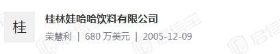 桂林娃哈哈饮料有限公司成立于2005年12月9日,其有三大股东,持股60%的第一大股东为恒枫交易有限公司(启信宝显现已闭幕)。宗庆后的浙江真宗投资有限公司持股35%,宗馥莉的宏胜饮料集团有限公司持股5%。