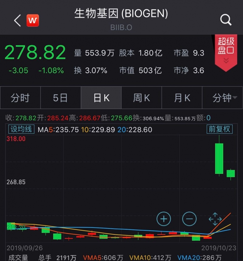 上述重启音讯宣告后,百健公司股价一度上涨超30%,简直挽回了3月宣告中止研讨后丢失的180亿美元市值。到当地时间10月23日收盘,百健公司收于278.82美元/股,跌幅1.08%,最新总市值约503亿美元。