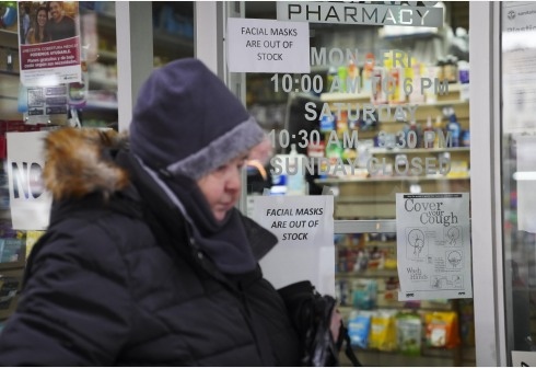 2月29日,美国纽约一家药店门上贴出“口罩售罄”的告示。新华社