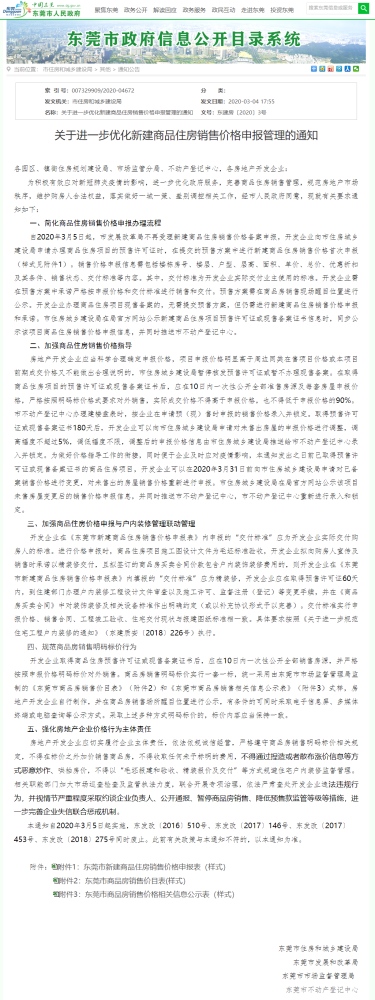 今日(3月4日),东莞市人民政府官网发布《关于进一步优化新建产品住所出售价格申报办理的告诉》(以下简称《告诉》)指出,要加强产品住所出售价格辅导,获得预售许可证或现售存案证书180天后,对未售出房子的申报价格做调整,调高起伏不超越5%,调低起伏不限。
