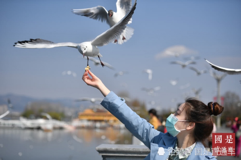 昆明海埂大坝康复敞开,招引市民喂鸥观景 中新社记者 刘冉阳 摄