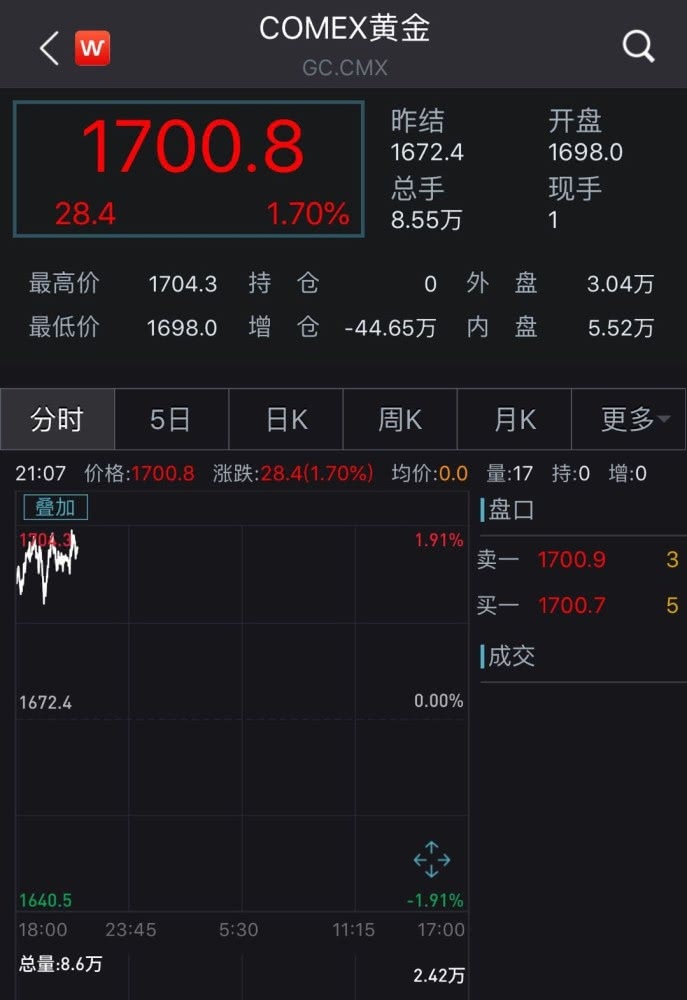 3月9日比特币跌破8100美元关口,24小时跌幅超10%。现货黄金跳空高开,打破1700美元/盎司关口。