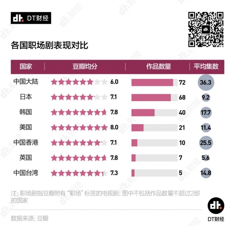但事实证明,集数和质量并非正相关。在所有职场剧中,豆瓣评分达到9分的职场剧均不超过20集。