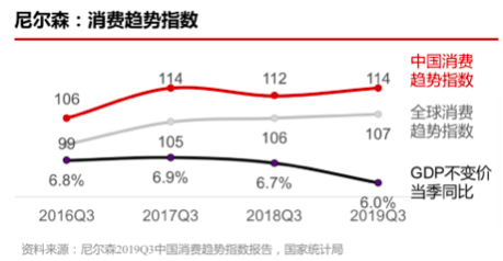 凹凸线城市消费观分解回到疫情迸发前的顾客根本面,根据尼尔森发布的陈述,代表顾客决心的我国消费趋势指数在2019年三季度坚持高位运转,大幅抢先全球,表现了我国顾客杰出的工作预期、消费志愿以及个人经济状况。