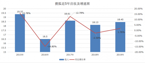 从总收入来看,搜狐也只能牵强保持稳定。2019年,搜狐全年总营收18.45亿美元,较去年同比添加1.76%。现实上,最近5年搜狐营收一直在18亿元左右动摇。