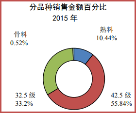 其间42.5级水泥的出售额占比,现已从2015年的55.84%,大幅提高到2019年的72.07%。