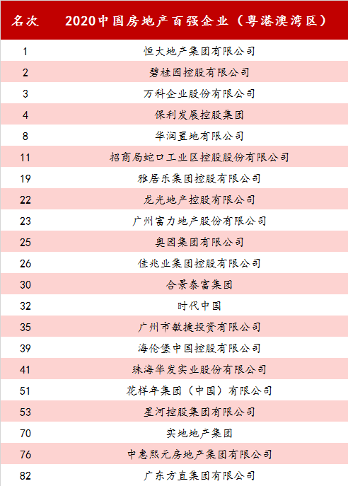 21家粤港澳房企跻身2020百强