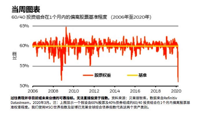 贝莱德发布的最新市场评论也显示,由于投资者担忧新冠肺炎疫情及其导致的经济损失,最近数周市场出现剧烈波动,可能会引起许多投资组合偏离其基准权重。股票出现大幅抛售及政府债券收益率下跌,导致许多投资组合低配股票并超配债券。“我们大家都认为需要将投资组合重新调整至基准权重,但调整时机及执行方式视投资者详细情况而定。”