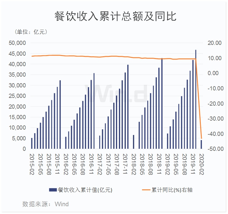 本年前两个月餐饮职业收入大幅下滑,累计同比下降超越40%。