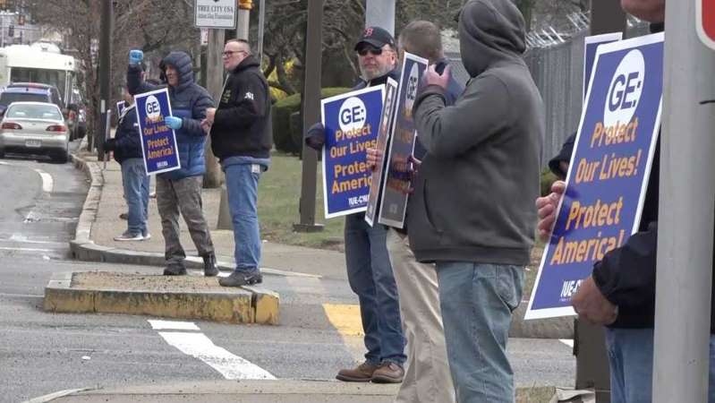 顾客新闻与商业频道报导,周一,美国通讯工人工会工业支部(IUE-CWA)的成员在通用及其航空子公司别离坐落波士顿、马萨诸塞州林恩市的总部外进行反对。
