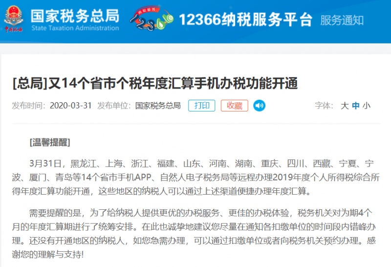 也就是说,这些地区的纳税人能够最终靠上述渠道便捷办理年度汇算啦。