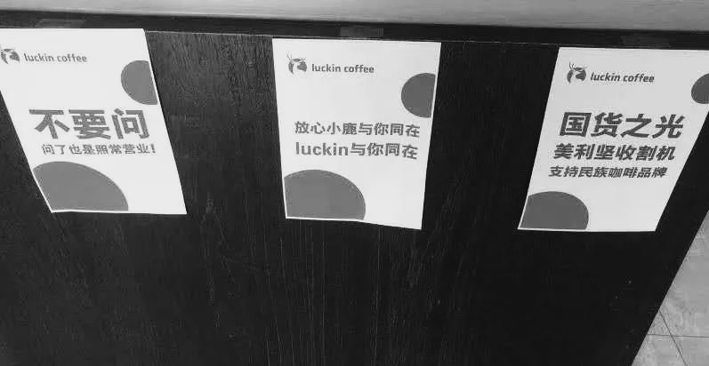 网友们叫嚣着“割洋韭菜”,乃至瑞幸自己都贴出带有“美利坚收割机”字眼的宣扬海报。