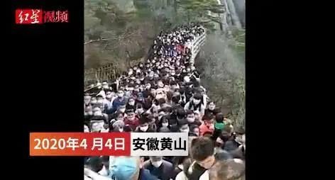 4月4日和4月5日,黄山景区接连两日进行限流。而在5日当天,面临汹涌的人流,黄山景区接连发布3条布告,景区进山人数已达到游客流量约束两万人,中止游客入园。