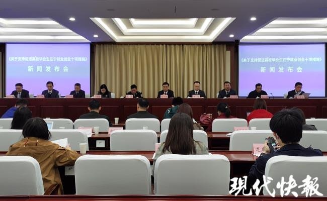 现代快报讯(记者 徐苏宁 卢河燕 文 / 摄)4月8日,南京市政府举行新闻发布会,发布《支撑促进高校结业生在宁工作创业十项办法》并进行解读。会上传来许多好消息,其间第一项办法便是,南京落户门槛再放宽,40周岁以下大专学历人员参保半年可落户!