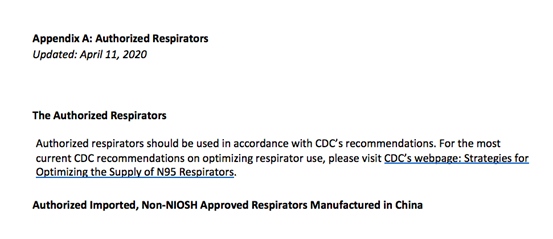 3月17日,美国疾病防备与操控中心(CDC)官网清晰大众在物资缺乏的状况下,可戴其他部分国家标准的口罩,包括我国KN95或KN100口罩。可是在3月24日,FDA发布获得EUA授权的他国标准口罩清单时,又将我国口罩扫除在外。3月28日,为缓解全国医疗防护配备的缺少,FDA紧迫同意了欧盟和5个国家(澳大利亚、巴西、日本、韩国、墨西哥)认证的非N95口罩,我国的KN95口罩依然没有获得紧迫授权。