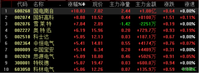 值得一提的是,国电南自(600268.SH)今天开盘直线拉升至涨停封板,到收盘,报收7.02元/每股,换手率达8.65%,成交额3.77亿元,总市值近49亿元。