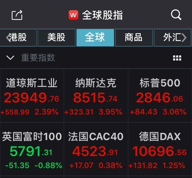 周二美股三大股指均以超越1.5%的涨幅开盘,到收盘时,三大股指道指涨幅2.39%,纳指涨3.95%,标普500指数涨3.06%。跟着纳指从3月低点反弹超20%,三大股指现在均进入技术性牛市。