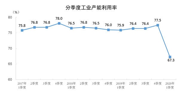 一季度,全国工业产能利用率为67.3%,比上年同期下降8.6个百分点。