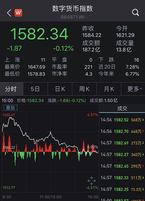 高潮迭起、峰回路转、冲高回落,今天,数字货币板块上演了一出高开低走的表演。截至收盘,数字货币指数从大涨4%到收绿。