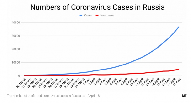 在具有1270万人口的莫斯科,官方记载的病例到4月17日为18105例,仅相当于其总人口的0.1%多一点。