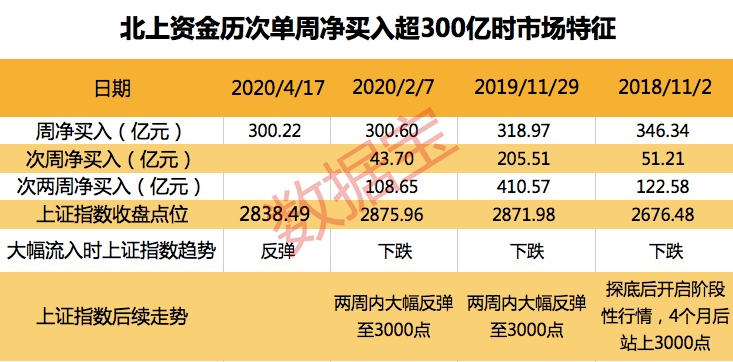 北上资金史上四次单周净流入超300亿