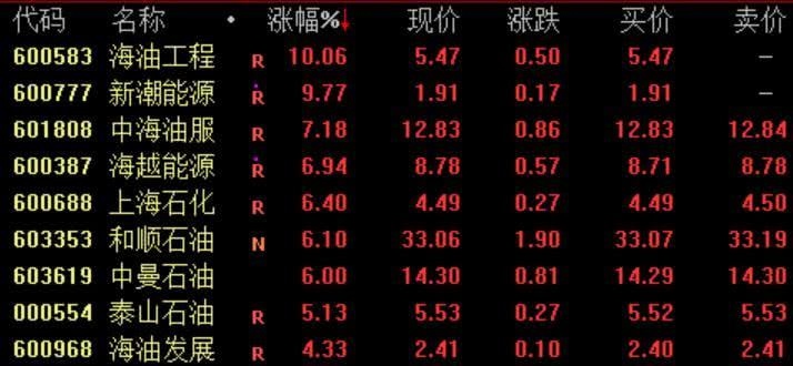 油气设服异动,海油工程拉升封板,中海油服、中曼石油、贝肯动力等跟涨。