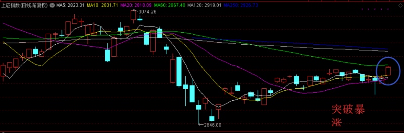 昨夜美股首先放量打破,站上60日均线,立异高,东京日经指数涨幅超2%,立异高!今日A股不得不跟,三大板指高开高走,上证一举拿下久攻不下的2850点,成交量暴增30%以上, 其间银行、稳妥反响不强,主要是银行、稳妥板块昨日现已起到了应有的护盘效果,今日轮到证券板块发动,大涨超2%,对上证指数支撑激烈,居然今日现已爆量上涨,资金光速出场。