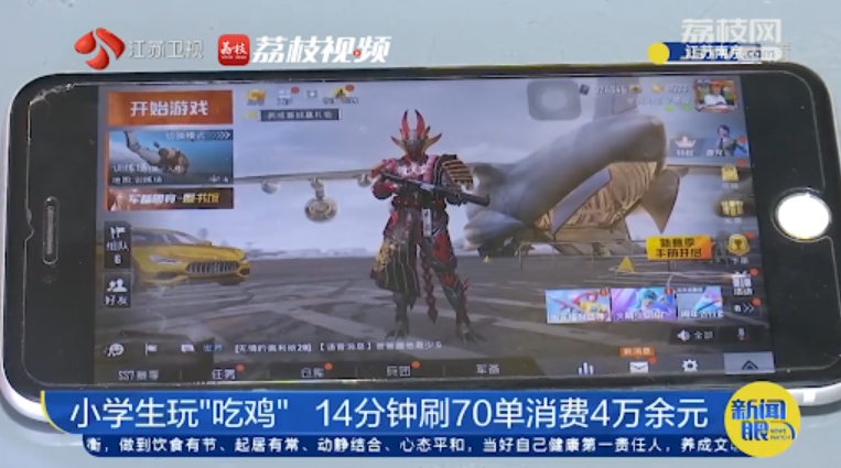 据江苏新闻,当地媒体上月报导了南京一位小学生“吃鸡”14分钟花掉4万一事。