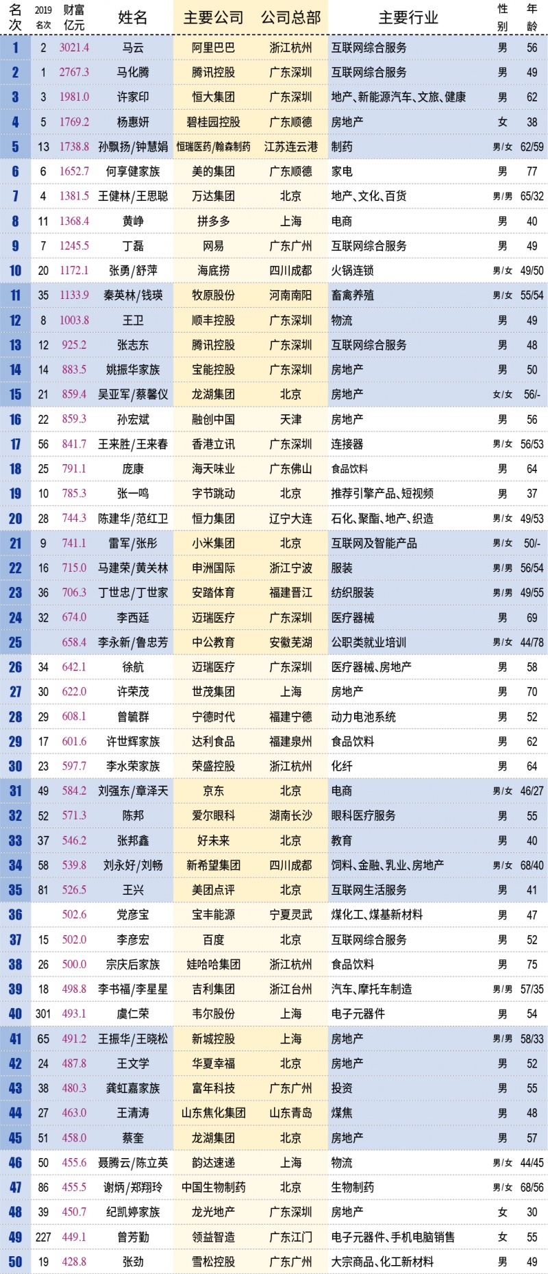 2019-2020财富最快生长50人:
