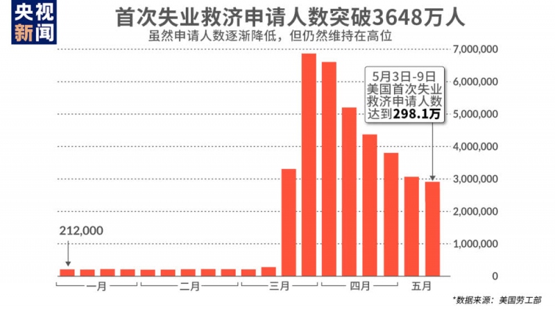 当地时间5月14日,美国劳工部发布的多个方面数据显现,上星期初次请求赋闲救助人数到达298.1万,之前一周为316.9万。这是该目标在接连7周高于300万后初次回落至300万以下水平。该数字高于此前经济学家预期本周请求救助人数为270万。赋闲救助请求数据回落缓慢,显现虽然美国部分区域经济重启,但新冠肺炎疫情关于美国经济,特别是劳动力商场持续形成沉重压力。