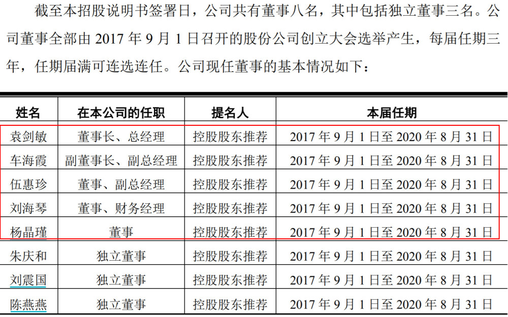 华盛昌此前发表的招股阐明书显现,公司共有董事八名,这中心还包含独立董事三名。其间,车海霞为女副董事长,伍惠珍、刘海琴、杨晶瑾均为女董事,任期均到2020年8月31日。