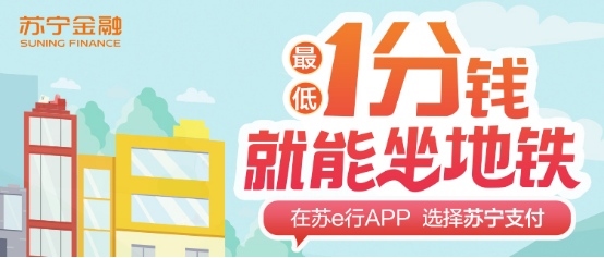 即日起至6月30日,用户在苏e行APP内使用苏宁支付扫码乘坐苏州地铁并完成支付,满2元减1.99元,可享“最低1分钱乘车”。活动期间同一用户最多可享5次优惠,名额有限,先到先得。