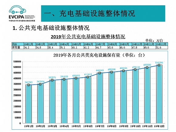 来自中国电动汽车充电基础设施促进联盟(EVCIPA)的数据透露:截至2019年12月,全国公共充电桩和私人充电桩总计保有量为121.9万座,换电站保有量总计306座。