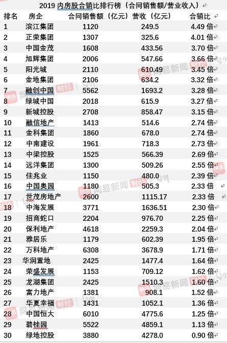 网易财经推出《2019内房股合销比排行榜》,通过计算合销比(合约销售额/实际营收),从而真正区分与观察房企的规模扩张及盈利能力等情况。