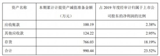 此外,年报披露同日,安奈儿披露了关于2019年度计提资产减值准备的公告,经公司及下属子公司对2019年末可能存在减值迹象的各类资产进行全面检查和减值测试后,2019年度计提各项资产减值准备合计990.45万元,占2019年度经审计归属于上市公司股东的净利润的23.52%,其中:应收款项坏账准备(含应收账款、其他应收款)224.42万元,存货跌价准备766.03万元。
