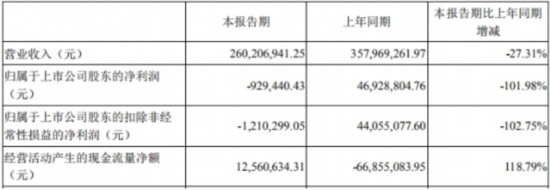 近日,安奈儿(002875.SZ)披露了2020年第一季度业绩。2020年一季度,公司实现营业收入2.60亿元,同比减少-27.31%;归属于上市公司股东的净利润-92.94万元,同比减少101.98%;归属于上市公司股东的扣除非经常性损益的净利润-121.03万元,同比减少102.75%;经营活动产生的现金流量净额1256.06万元,上年同期为-6685.51万元。