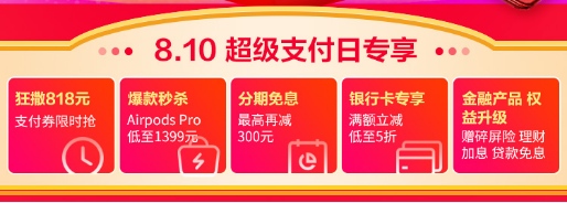 818购物狂欢盛宴已经开启,在J-10%升级、击穿低价、价保60天的基础上,苏宁金融旗下苏宁支付、任性付等产品联合苏宁易购共同打造“810超级支付日”,810这一天恰逢苏宁易购家电日,此次支付盛宴将为广大消费者带来更多购物优惠。