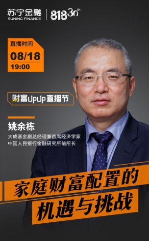 今年以来,面对疫情影响和全球投资市场的剧烈震荡,如何做好家庭财富配置实现财产保值增值,成为很多人迫切需要思考和解决的头等大事。8月18日19:00,苏宁金融特邀大成基金副总经理兼首席经济学家、中国人民银行金融研究所前所长姚余栋,做客财富UPUP直播节,与大家畅聊家庭财富配置的机遇与挑战。届时登录苏宁金融APP“财富”页,或关注苏宁金融微信公众号,点击底部菜单中的“财富直播”,即可获取观看链接。